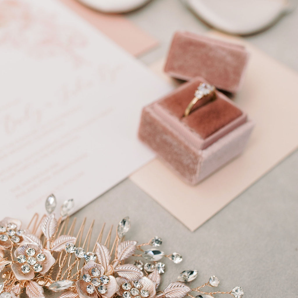 Heirloom velvet ring boxes in 14 colors and 4 shapes.